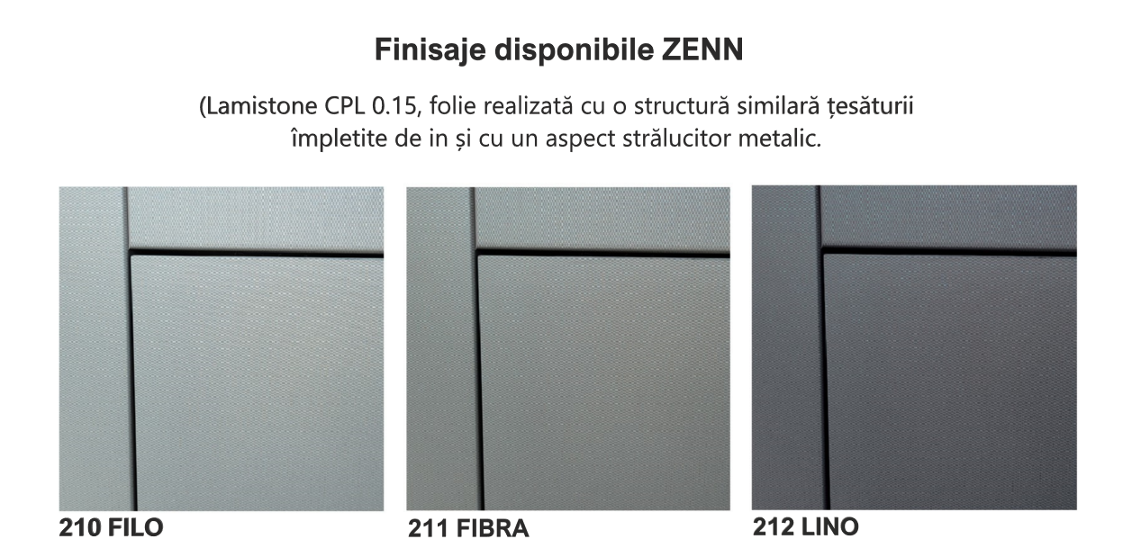 Sunt disponibile 3 de finisaje cu folie CPL (vizualizează finisajele).